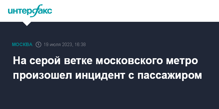 Москва. 19 июля. INTERFAX.RU - Инцидент с пассажиром произошел на серой ветке московского метро, сообщается в телеграм-канале столичного департамента транспорта в среду.