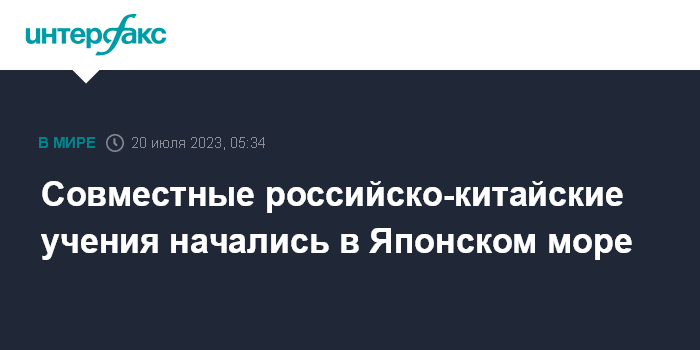 Москва. 20 июля. INTERFAX.RU - Российско-китайские военно-морские учения "Север/Взаимодействие-2023" стартовали в акватории Японского моря, сообщил Тихоокеанский флот (ТОФ).