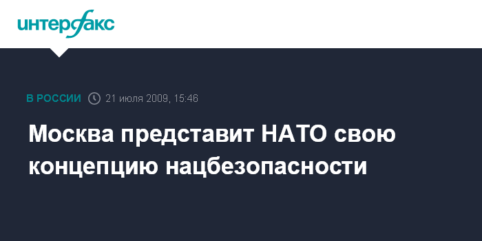 Москва. 21 июля. INTERFAX.RU - Российская концепция национальной безопасности будет представлена в среду, 22 июля, в Брюсселе на заседании Совета Россия-НАТО.