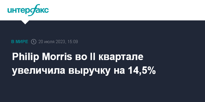 Москва. 20 июля. INTERFAX.RU - Табачный концерн Philip Morris International сократил чистую прибыль и увеличил выручку во втором квартале 2023 года, при этом скорректированная прибыль и выручка превысили ожидания рынка.
