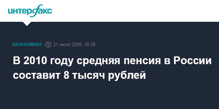В 2010 году средняя пенсия в России составит 8 тысяч рублей