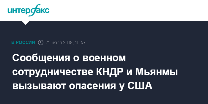 Москва. 21 июля. INTERFAX.RU - В Вашингтоне тщательно изучают сообщения о развитии военного сотрудничества между КНДР и Мьянмой (Бирмой), заявила во вторник госсекретарь США Хиллари Клинтон.