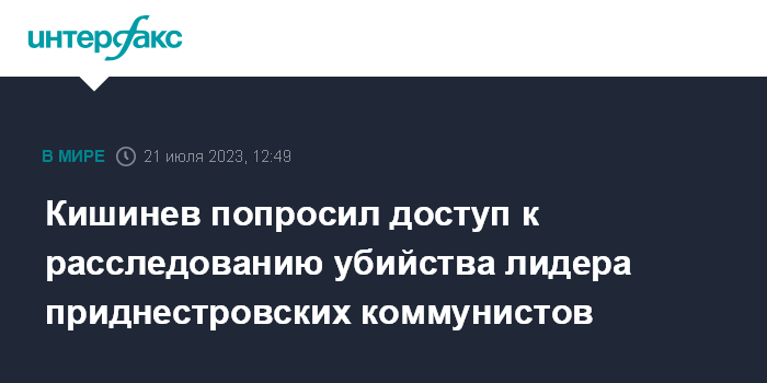 Кишинев попросил доступ к расследованию убийства лидера приднестровских коммунистов
