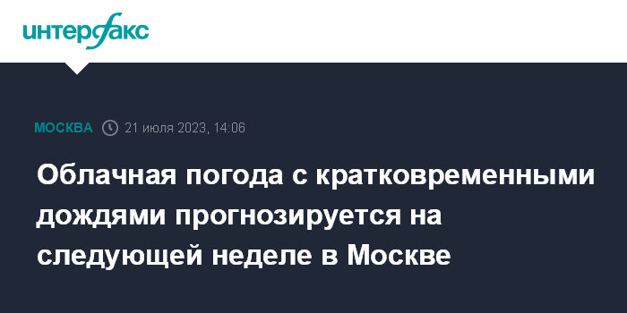 Облачная погода с кратковременными дождями прогнозируется на следующей неделе в Москве