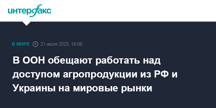 В ООН обещают работать над доступом агропродукции из РФ и Украины на мировые рынки