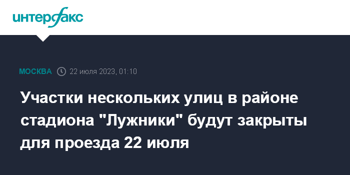 Участки нескольких улиц в районе стадиона "Лужники" будут закрыты для проезда 22 июля