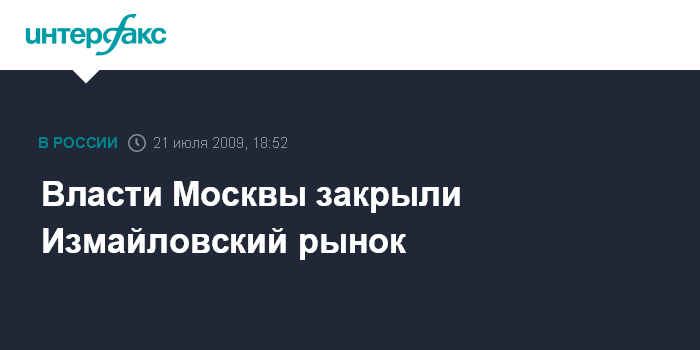 Москва. 21 июля. INTERFAX.RU - В соответствии с распоряжением префекта Восточного округа Москвы приостановлена деятельность Измайловского рынка, сообщила во вторник "Интерфаксу" заместитель начальника управления информации и общественных связей ГУВД Москвы Жанны Ожимина.