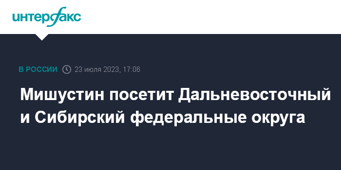 Москва. 23 июля. INTERFAX.RU - Премьер-министр России Михаил Мишустин 24-27 июля совершит рабочую поездку в Дальневосточный и Сибирский федеральные округа, сообщила в воскресенье пресс-служба правительства.