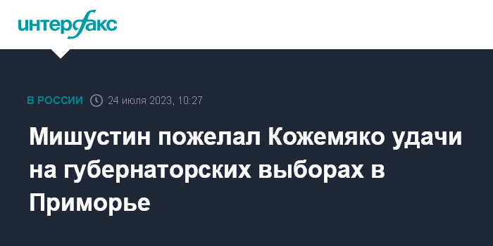 "Олег Николаевич, Вы в сентябре по поручению президента идете на очередной срок избираться губернатором, хочу сказать, что Вы профессионал, возглавляли серьезные регионы и, конечно, делаете все, чтобы Приморье стало краше, абсолютно уверен, что люди в этом смысле будут поддерживать ваши начинания", - сказал Мишустин на встрече с Кожемяко.