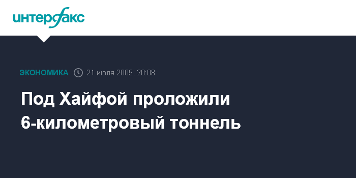 Хайфа. 21 июля. INTERFAX.RU - Завершены работы по прокладке 6-километрового Кармельского тоннеля под Хайфой (Израиль), сообщили "Интерфаксу" в пресс-службе мэрии города.