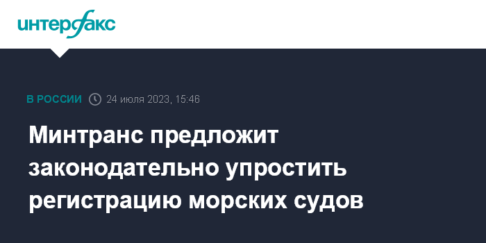 Москва. 24 июля. INTERFAX.RU - Минтранс хочет упростить госрегистрацию морских судов, сообщил на заседании президиума думской фракции "Единая Россия" министр транспорта Виталий Савельев.