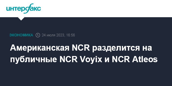 Москва. 24 июля. INTERFAX.RU - Американский поставщик технологий для бизнеса NCR Corp. в четвертом квартале планирует разделиться на публичные компании NCR Voyix и NCR Atleos, говорится в пресс-релизе NCR.
