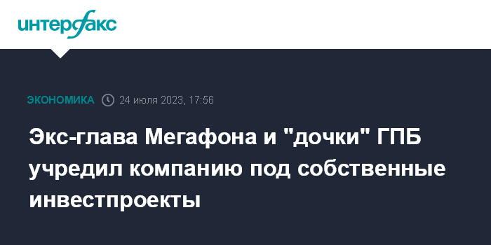 Экс-глава Мегафона и "дочки" ГПБ учредил компанию под собственные инвестпроекты