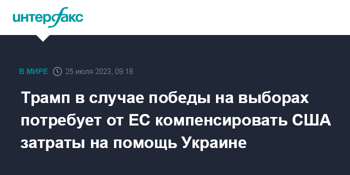 Трамп в случае победы на выборах потребует от ЕС компенсировать США затраты на помощь Украине
