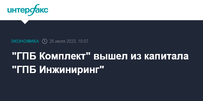 "ГПБ Комплект" вышел из капитала "ГПБ Инжиниринг"