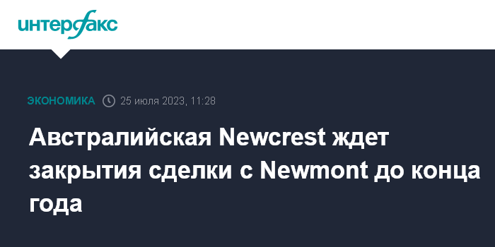 Москва. 25 июля. INTERFAX.RU - Руководство австралийской Newcrest Mining Ltd. ожидает закрытия сделки по слиянию с американской золотодобывающей корпорацией Newmont Corp. до конца 2023 года, сообщила пресс-служба компании.