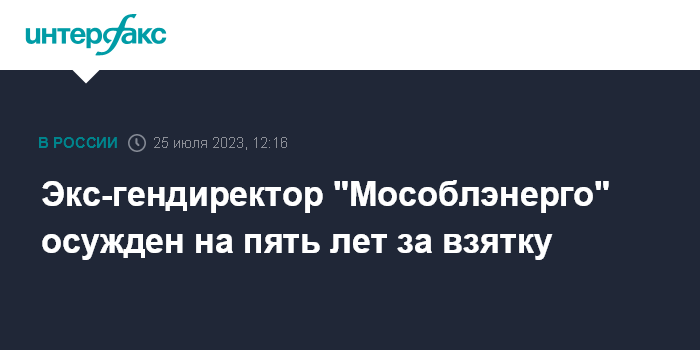 Экс-гендиректор "Мособлэнерго" осужден на пять лет за взятку