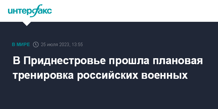 Москва. 25 июля. INTERFAX.RU - Российские военные в Приднестровье провели плановую тренировку, которая включала огневую подготовку и занятия по радиационной защите, сообщила пресс-служба Западного военного округа (ЗВО).