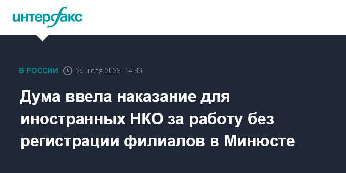 Также ответственность наступит за участие в иностранной НКО, которая не имеет зарегистрированного в порядке, предусмотренном законодательством, структурного подразделения - отделения.