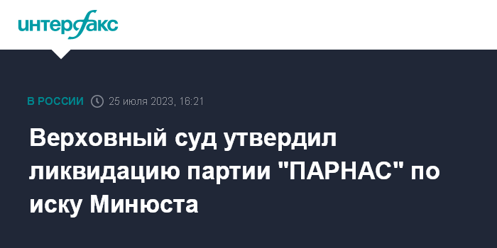 Верховный суд утвердил ликвидацию партии "ПАРНАС" по иску Минюста
