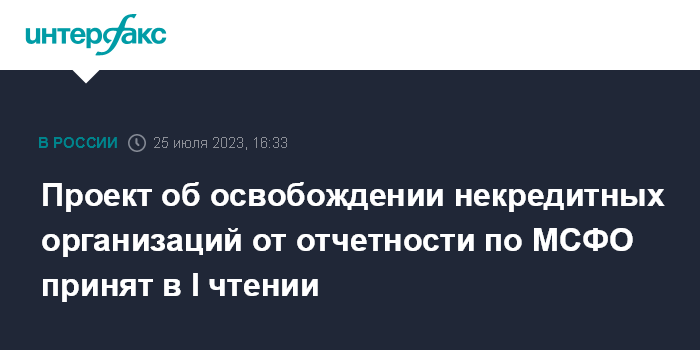 Проект об освобождении некредитных организаций от отчетности по МСФО принят в I чтении