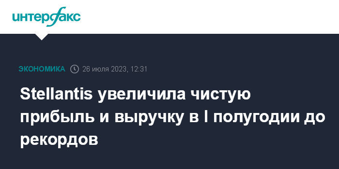 Москва. 26 июля. INTERFAX.RU - Автопроизводитель Stellantis NV, образованный в результате слияния Fiat Chrysler и PSA Group, увеличил чистую прибыль в первом полугодии 2023 года на 37%, выручку - на 12%, причем оба показателя достигли рекордных уровней.