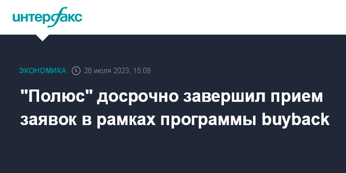 Москва. 26 июля. INTERFAX.RU - "Полюс" завершил прием заявок в рамках программы buyback в связи с достижением их максимального количества, сообщила компания.
