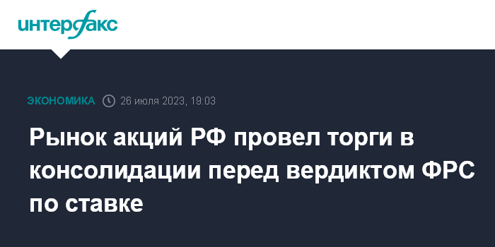 Рынок акций РФ провел торги в консолидации перед вердиктом ФРС по ставке