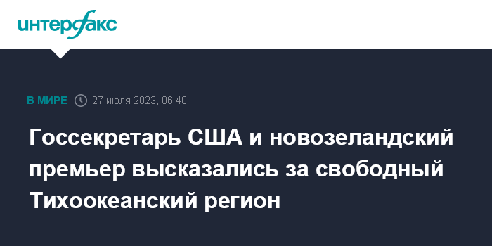 Госсекретарь подчеркнул важность региона для Соединенных Штатов и выразил уверенность в том, что США и Новая Зеландия "продолжат совместную работу по привлечению и поддержке партнеров".