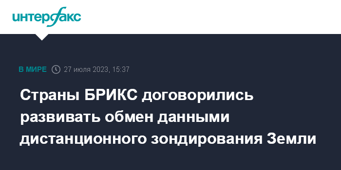 Страны БРИКС договорились развивать обмен данными дистанционного зондирования Земли