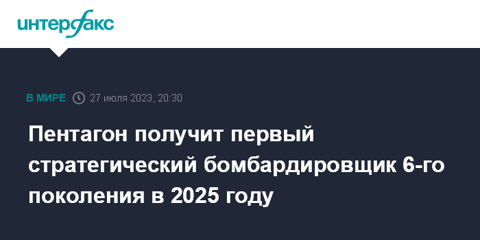Пентагон получит первый стратегический бомбардировщик 6-го поколения в 2025 году
