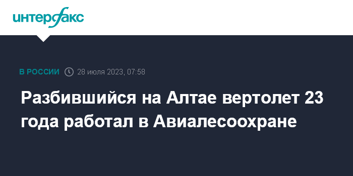 Москва. 28 июля. INTERFAX.RU - Вертолет Ми-8 с бортовым номером RA-24474, который потерпел крушение в четверг на Алтае, десятки лет эксплуатировался Авиалесоохраной, следует из данных сайта russianplanes.net.
