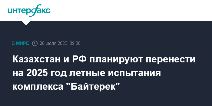 В протоколе о внесении изменений в межправительственное соглашение между Казахстаном и РФ о создании на космодроме "Байконур" космического ракетного комплекса "Байтерек" от 22 декабря 2004 года отмечается, что "стороны обеспечивают начало летных испытаний космического ракетного комплекса "Байтерек" с ракетой-носителем среднего класса в 2025 году", тогда как в действующем документе начало летных испытаний предполагалось провести в 2023 году.