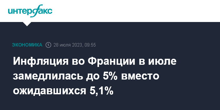 Инфляция во Франции в июле замедлилась до 5% вместо ожидавшихся 5,1%