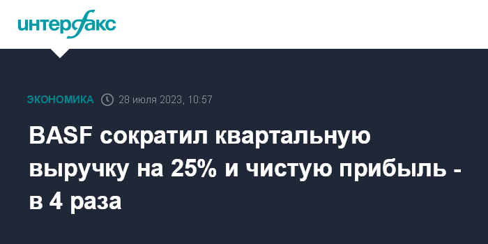 BASF сократил квартальную выручку на 25% и чистую прибыль - в 4 раза