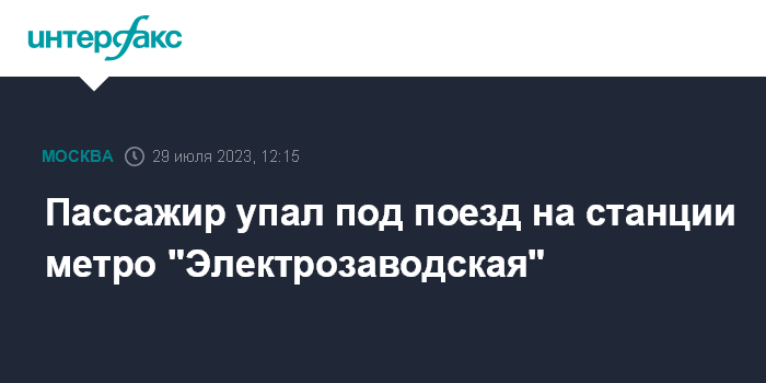 "На станции "Электрозаводская" по неустановленным причинам под поезд упал пассажир. Для его спасения отключено напряжение контактного рельса", - сказал собеседник агентства