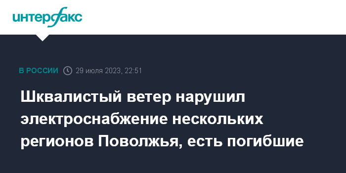 Шквалистый ветер нарушил электроснабжение нескольких регионов Поволжья, есть погибшие