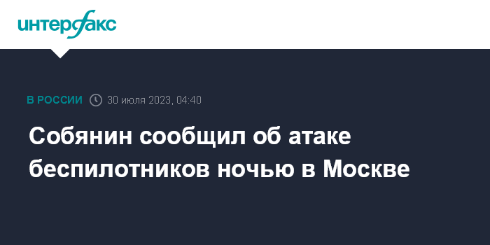Собянин сообщил об атаке беспилотников ночью в Москве