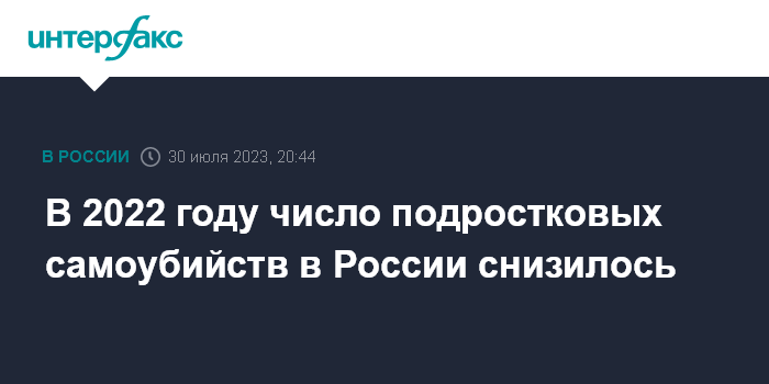 В 2022 году число подростковых самоубийств в России снизилось