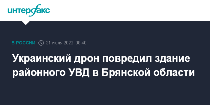 Москва. 31 июля. INTERFAX.RU - Губернатор Брянской области Александр Богомаз сообщил об атаке ВСУ на здание УВД в Трубчевском районе.