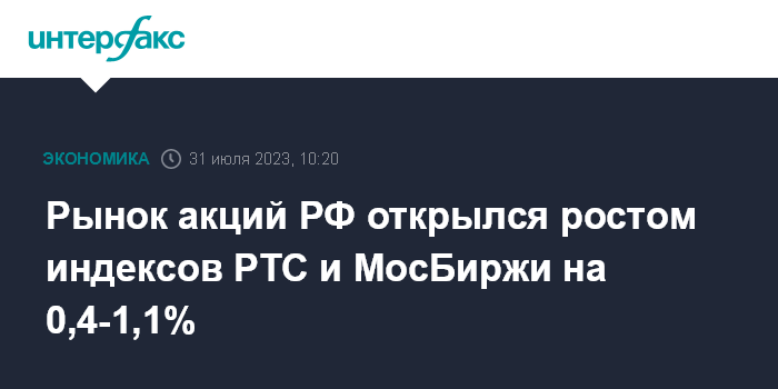 Рынок акций РФ открылся ростом индексов РТС и МосБиржи на 0,4-1,1%