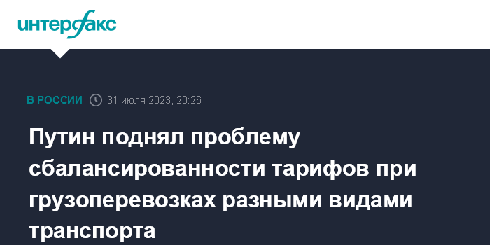 Москва. 31 июля. INTERFAX.RU - Президент РФ Владимир Путин поручил правительству совместно с комиссией Госсовета по направлению "Транспорт" проработать вопрос обеспечения сбалансированности тарифных решений при грузовых перевозках.