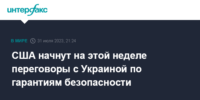 Москва. 31 июля. INTERFAX.RU - Администрация США приступает к консультациям с Украиной по возможным будущим гарантиям безопасности Киеву, сообщил в понедельник представитель Госдепартамента Мэттью Миллер.