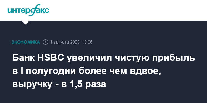 Банк HSBC увеличил чистую прибыль в I полугодии более чем вдвое, выручку - в 1,5 раза
