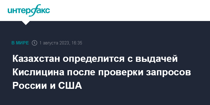 Казахстан определится с выдачей Кислицина после проверки запросов России и США