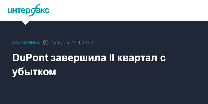 Москва. 2 августа. INTERFAX.RU - Во II квартале 2023 года американская химическая компания DuPont de Nemours Inc. получила убыток, но ее скорректированная прибыль и выручка превзошли ожидания рынка.