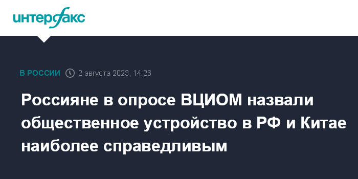 Россияне в опросе ВЦИОМ назвали общественное устройство в РФ и Китае наиболее справедливым
