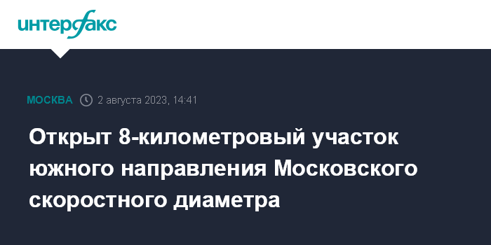 Москва. 2 августа. INTERFAX.RU - Мэр Москвы Сергей Собянин открыл в среду движение по участку южного направления Московского скоростного диаметра (МСД) от Южной рокады до МКАД.