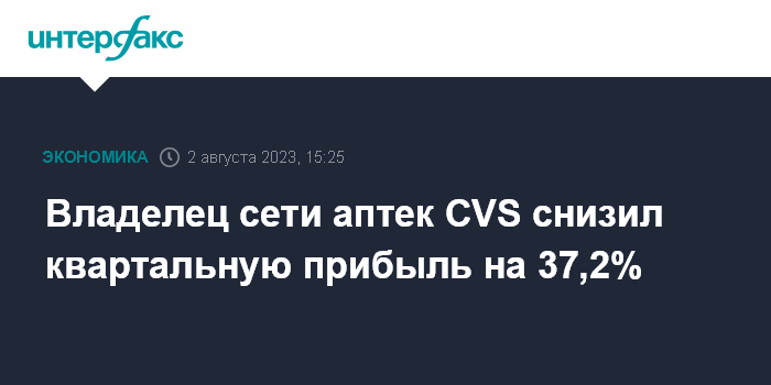 Москва. 2 августа. INTERFAX.RU - Американская CVS Health Corp., которой принадлежат сеть аптек и страховщик Aetna Inc., во втором квартале снизила чистую прибыль на 37,2%, однако ее скорректированный показатель и выручка превзошли ожидания рынка.