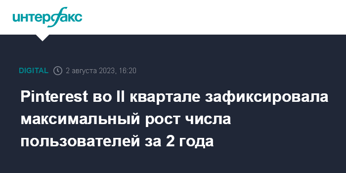 Москва. 2 августа. INTERFAX.RU - Во II квартале Pinterest Inc., владелец популярного интернет-сервиса визуальных закладок, отметил увеличение числа пользователей (активность учетной записи не реже раза в месяц, MAU) на максимальные за два года 8%, до 465 млн.
